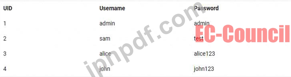 ウェブアプリケーション www.movieabc.com はSQLインジェクション攻撃を受けやすいことが判明しました。このウェブアプリケーションを悪用し、ユーザーの認証情報を取得するというタスクが与えられます。データベーステーブルでユーザー john にマッピングされているUIDを選択してください。