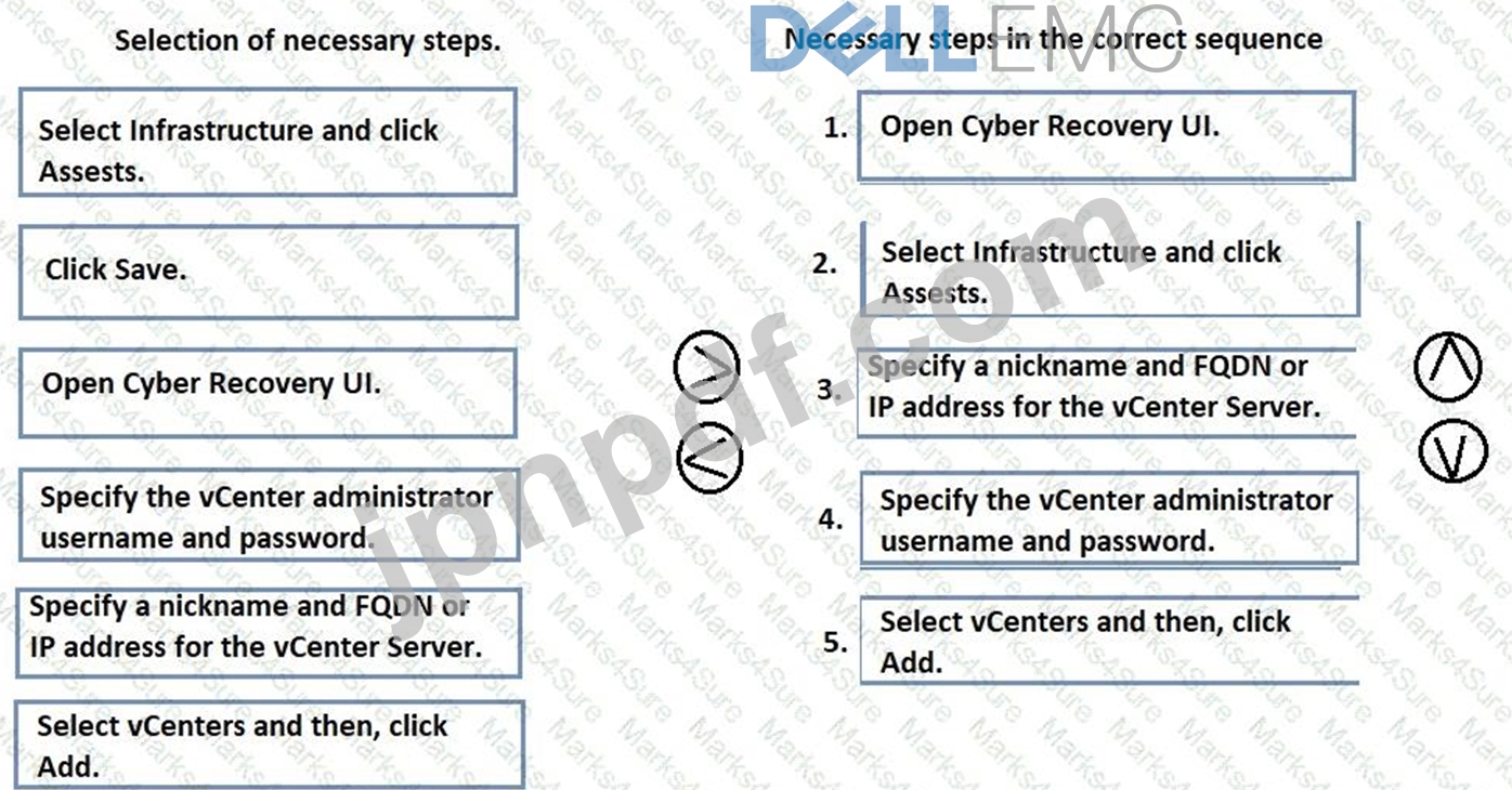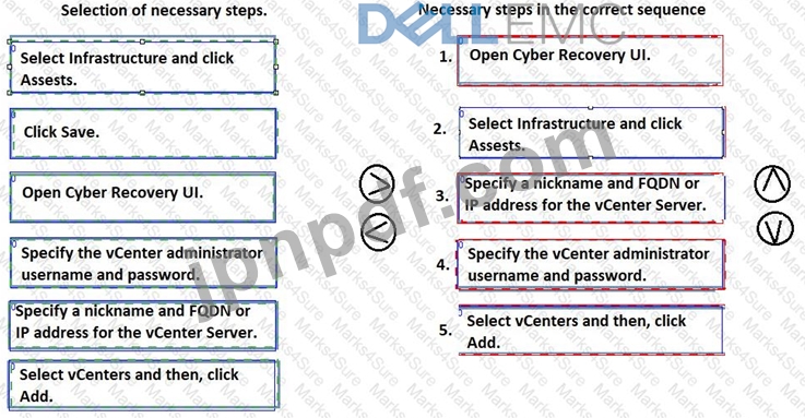 オンプレミスのDell PowerProtect Cyber RecoveryコンテナにvCenter Serverをインストールする場合は、PowerProtect Cyber Recoveryソフトウェアに登録する必要があります。必要な手順を時系列順に並べます。