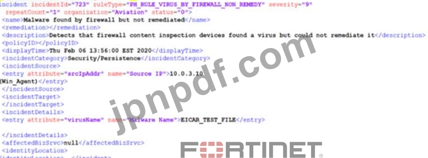 管理者は、図に示されている FortiSIEM からのインシデントを修復したいと考えています。