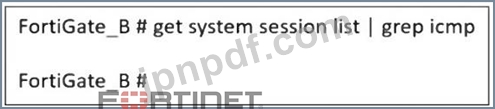 管理者は、ping コマンドを使用してクラスターをテストしているときにパケット損失を監視し、FortiGate_B のセッション出力が図のとおりであることを発見しました。