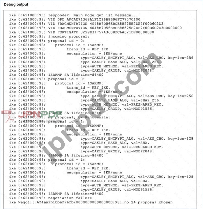 Refer to the exhibit, which contains partial output from an IKE real-time debug.