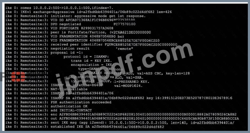 IKE リアルタイム デバッグからの部分的な出力を含む展示を参照してください。