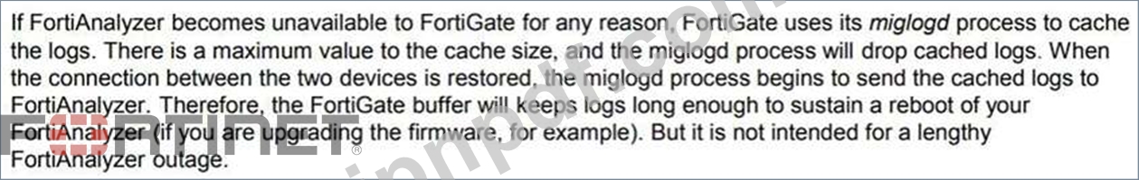 FortiAnalyzerが一時的に利用できないときに、FortiGateからFortiAnalyzerに送信されるログはどうなりますか?