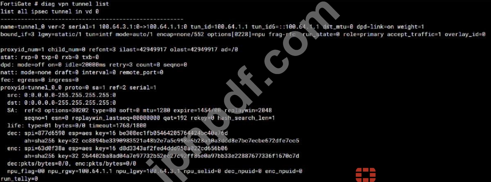 IPsec VPN トンネルに関する情報が記載されている展示を参照してください。