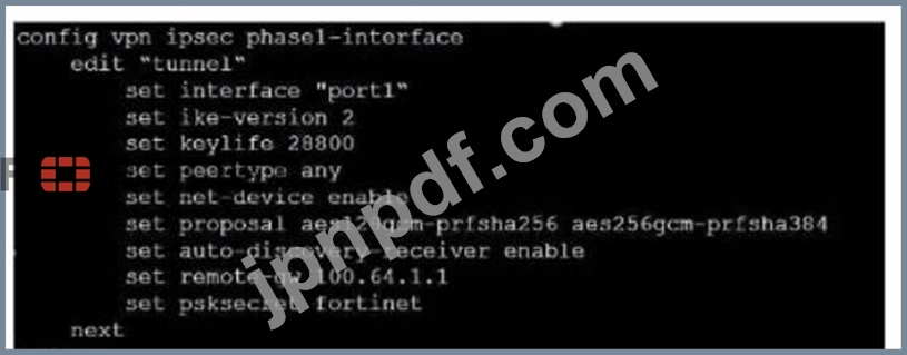 スポークの部分的な ADVPN 構成を含む展示を参照してください。