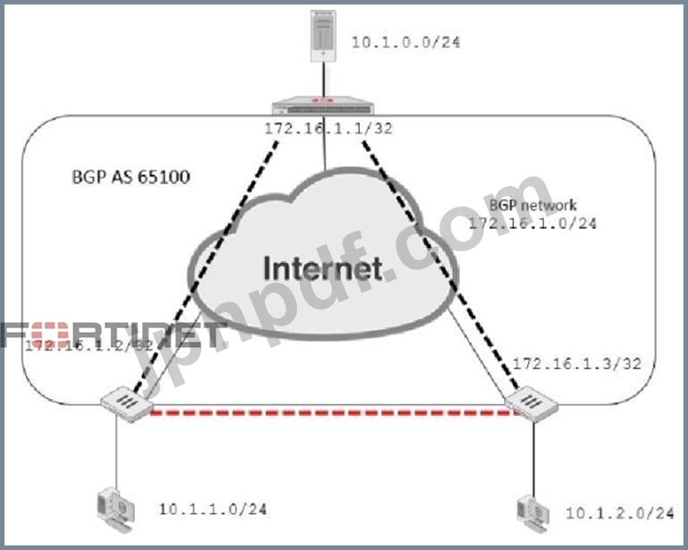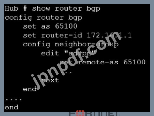 ADVPN ネットワーク図と部分的な BGP 構成を含む展示を参照してください。