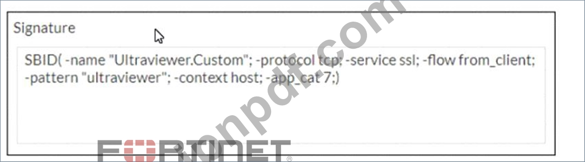 このカスタム シグネチャを FortiGate に保存するには、どの 2 つの変更をこのカスタム シグネチャの構成に適用する必要がありますか? (2 つ選択してください。)