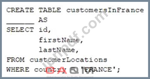 データ エンジニアは、フランスに住む顧客の名前を含む新しいテーブルを作成したいと考えています。