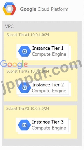 あなたの会社では、Compute Engine 上で 3 層ソリューションを実行しています。現在のインフラ構成は以下の通りです。