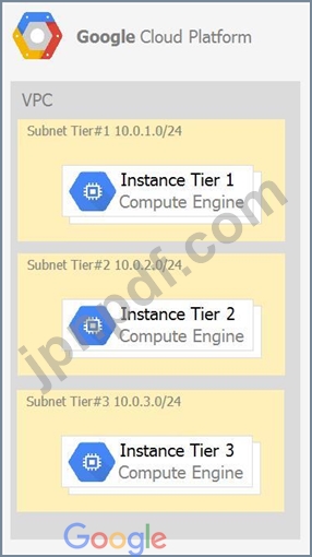 あなたの会社では、Compute Engine 上で 3 層ソリューションを実行しています。現在のインフラ構成は以下の通りです。