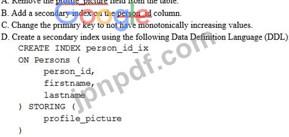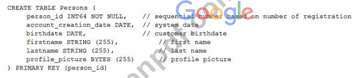 あなたの顧客は Cloud Spanner を使用するソリューションを実装しましたが、1 つのテーブルで読み取りレイテンシ関連のパフォーマンスの問題が発生していることに気付きました。このテーブルには、主キーを使用するユーザーのみがアクセスします。テーブルスキーマを以下に示します。