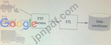 TerramEarthの既存のアーキテクチャは、データセンターに常駐するLinuxベースのシステムで構成されています。これらのシステムは、フィールドからCSVファイルをgzipで圧縮し、FTP経由でアップロードし、それらを変換して集約し、データをデータウェアハウスに配置します。このプロセスには時間がかかるため、集計レポートは3週間前のデータに基づいています。