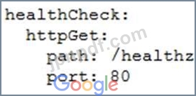 アプリケーションを Google Kubernetes Engine (GKE) クラスターにデプロイすることを計画しています。アプリケーションは、HTTP ベースのヘルスチェックを /healthz で公開します。このヘルス チェック エンドポイントを使用して、ロード バランサーによってトラフィックをポッドにルーティングする必要があるかどうかを判断します。