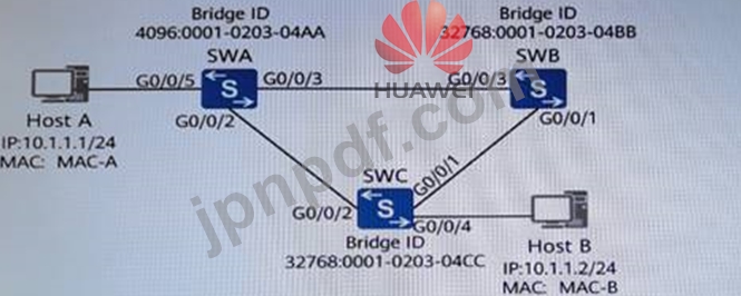 以下のネットワークに示すように、すべてのスイッチで STP プロトコルが有効になっています。SWA の G0/0/2 ポート設定 BPDU 送信機能を無効にすると、SWC G0/0/1 が再収束してルート ポートになります。このプロセスについて、次の記述のうち正しいものはどれですか? (複数の選択肢)