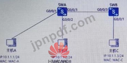 下図のように。すべてのホストは正常に通信できます。SWA MACアドレスとポート間の対応する関係は正しいですか?()(多肢選択問題)