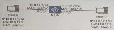 次の図に示すネットワークでは、ホストにARPキャッシュがあり、ホストAがホストBにパケットを送信します。