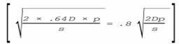 Q =単位での注文サイズ、D =単位での年間需要、p =発注書あたりのコスト、s=1つの在庫単位の年間の運送費。年間需要が369/o減少した場合、最適な注文サイズは次のようになります。