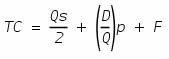 TC=総在庫コストQ=各注文のサイズD=単位での年間需要F=1つの注文の固定費P=1つの注文の変動費S=1つの在庫単位の年間保有(運搬)コスト