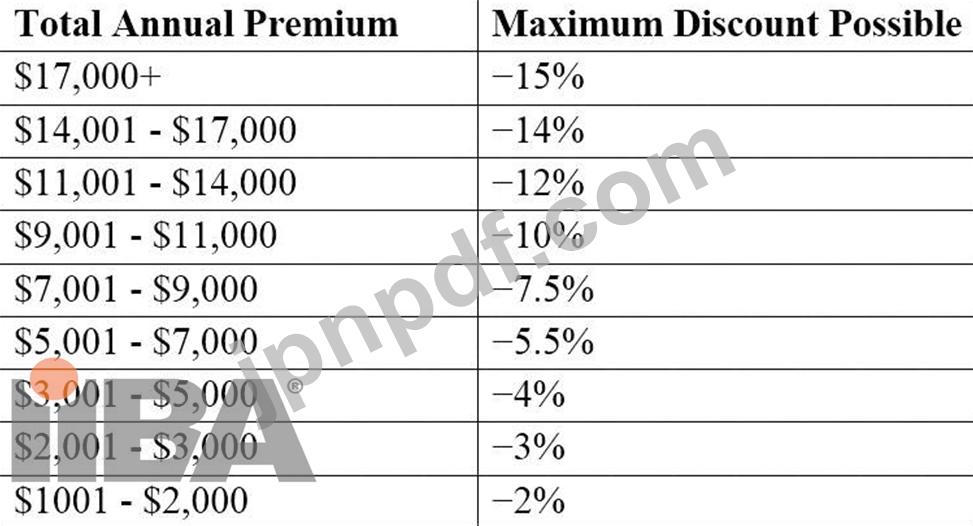 ビジネスアナリスト(BA)は、アクチュアリー、製品スペシャリスト、営業スタッフ、リスクマネージャー、引受会社などの利害関係者と協力して、以下に基づいてさまざまなレベルの割引を顧客に適用することに同意します。