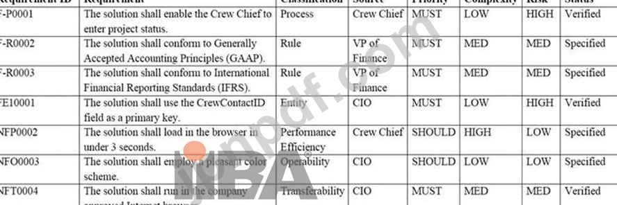 要件を検証しているときに、BA は要件 ID NFO0003 が要件を満たしていないことに気づきました。