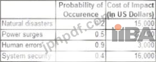 ソフトウェア実装プログラムのリスク評価演習で、ビジネス アナリスト (BA) は、特定された各リスクの発生確率 (POC) と影響コストを次のように計算することに成功しました。