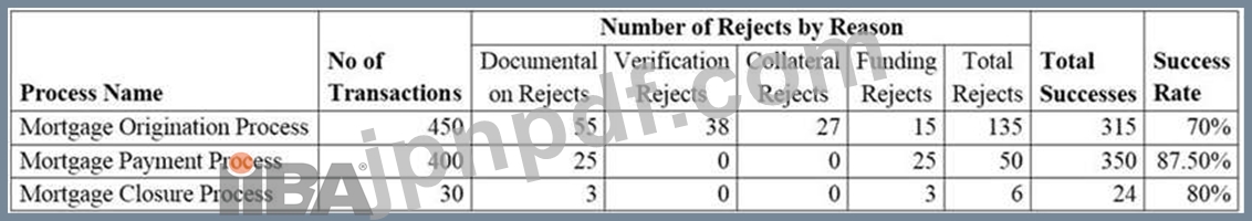 * 各ビジネスプロセスには一定数の拒否があり、拒否の理由には文書化、検証、担保、資金調達などが含まれます。融資拒否は、銀行の顧客が住宅ローン処理手数料または住宅ローン閉鎖の支払いを怠った場合に発生します。
