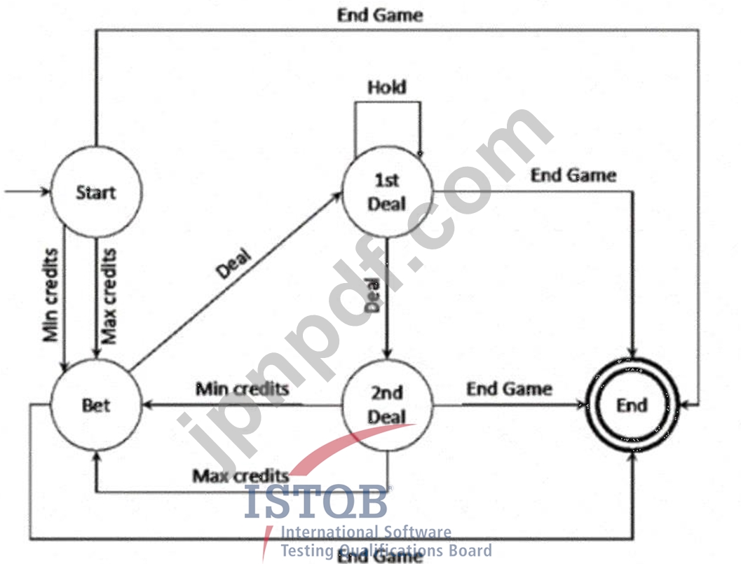 ビデオ ポーカー ゲームの動作を指定する状態遷移図の次の簡略化されたバージョンを検討してください。