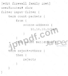 展示を参照すると、このシナリオでのJunosデバイスのデフォルトのアクションは何ですか?