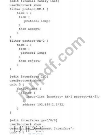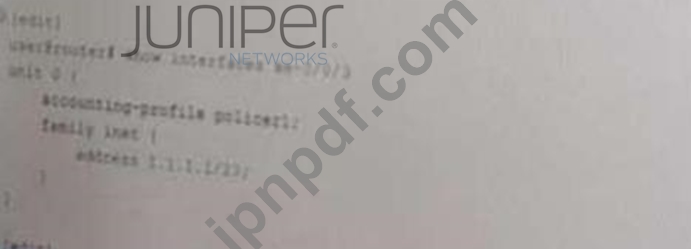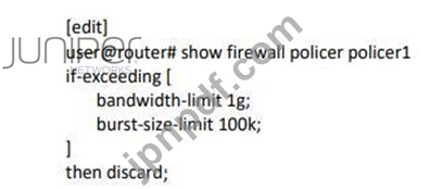 展示に示されているポリサーを使用して、インターフェイスxe-0/0/3のトラフィックを1Gに制限するように求められます。