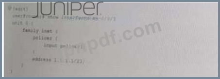 展示に示されているポリサーを使用して、インターフェイスxe-0/0/3のトラフィックを1Gに制限するように求められます。