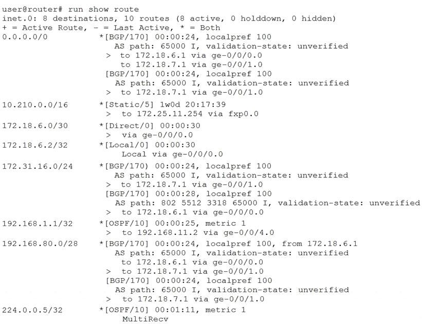 展示に示されている192.168.80.98宛てのパケットのネクストホップは何ですか?