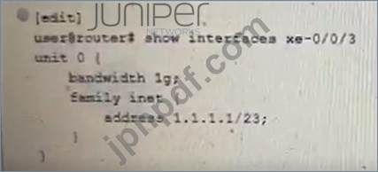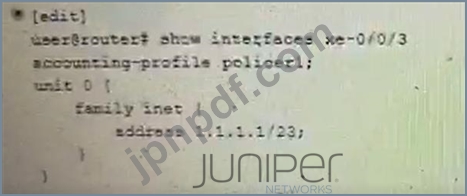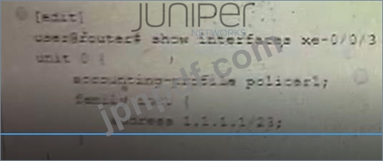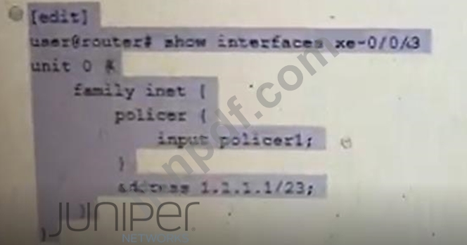 展示に示されているポリサーを使用して、インターフェイスxe-0/0/3のトラフィックを1Gに制限するように求められます。