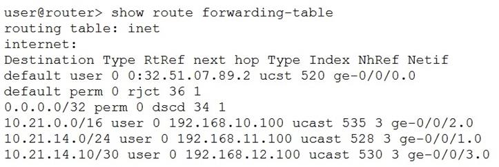 10.21.14.16の宛先に到達するために使用されるネクストホップインターフェイスはどれですか。