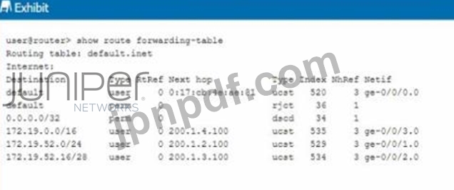 展示に示されているように、172.19.52.101宛てのトラフィックのネクストホップインターフェイスは何ですか?