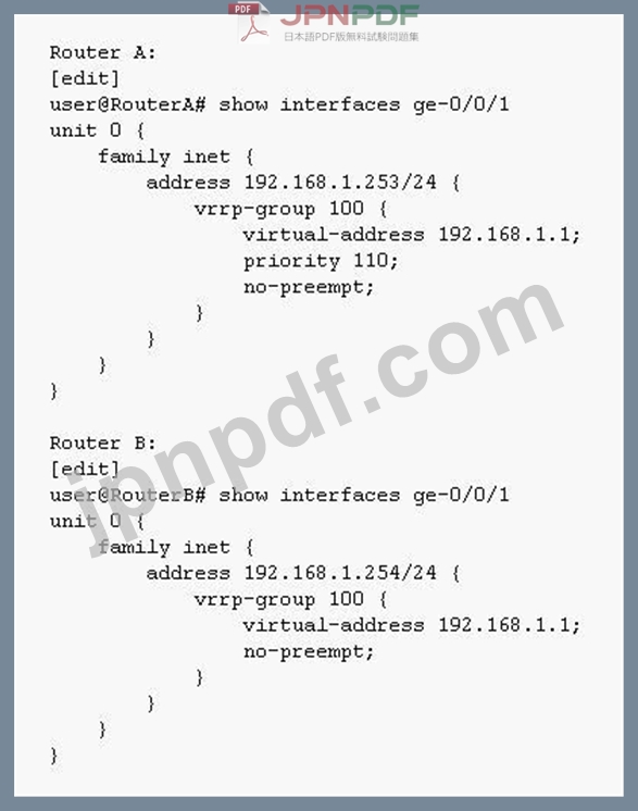In the exhibit, after Router A reboots, which two statements will be true about VRRP group