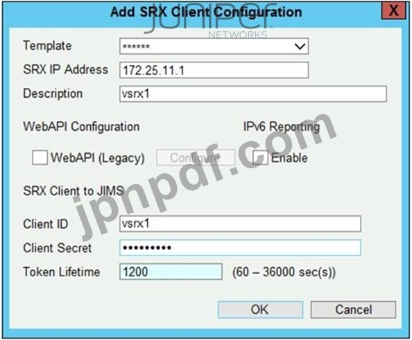 展示を参照すると、JIMS SRXクライアント構成の2つの値は、SRXクライアントで構成された値と一致する必要がありますか?(2つ選択してください。)
