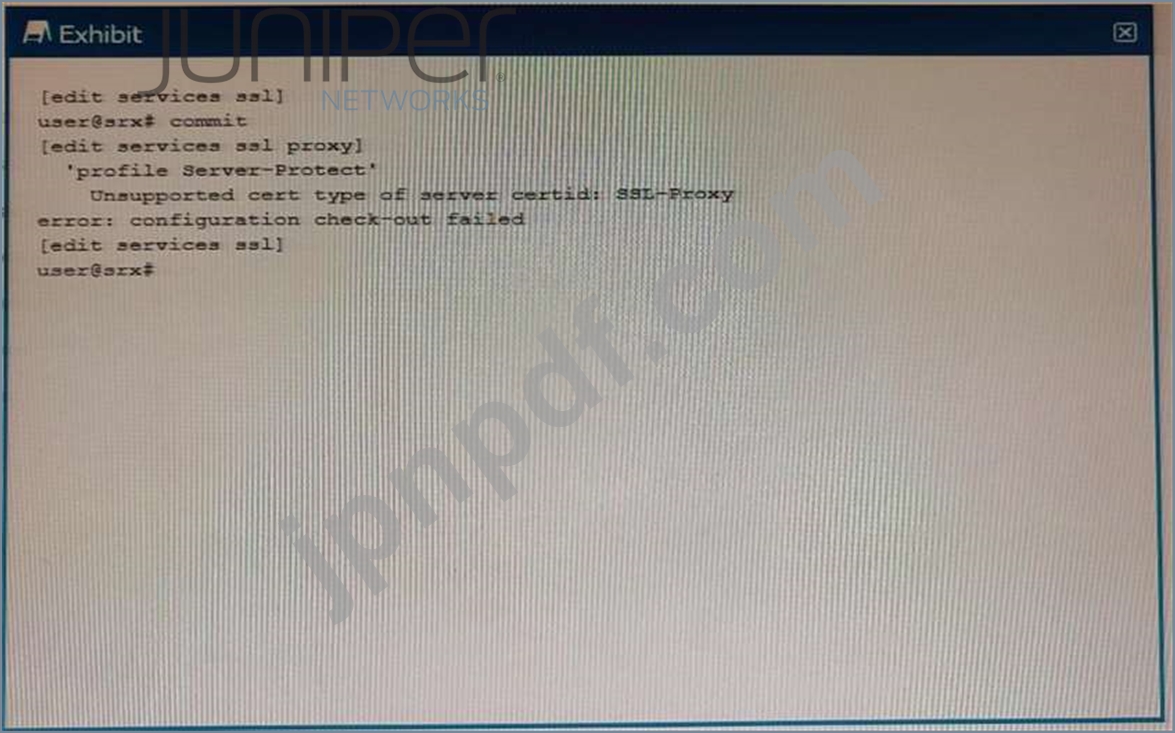 このエラーの原因としては、SSL プロキシ証明書 ID が存在しないこと、または SSL プロキシ証明書 ID がブロックリストの一部であることが 2 つ考えられます。SSL プロキシ証明書 ID が存在しない場合は、新しい証明書を生成する必要があります。SSL プロキシ証明書 ID がブロックリストの一部である場合、ブロックリストのソースに連絡して削除する必要があります。さらに、サーバーを適切に保護するために必要なため、SSL プロキシ証明書 ID に正しい再ネゴシエーション オプションが設定されていることを確認する必要がある場合があります。詳細については、https://www.juniper.net/documentation/en_US/junos/topics/reference/configuration-statement/security-ssl-proxy-configuration.html にある Juniper セキュリティのドキュメントを参照してください。