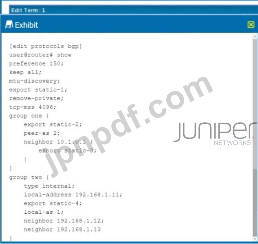 展示を参照すると、どのポリシーがルートをIBGPピアにエクスポートしますか?