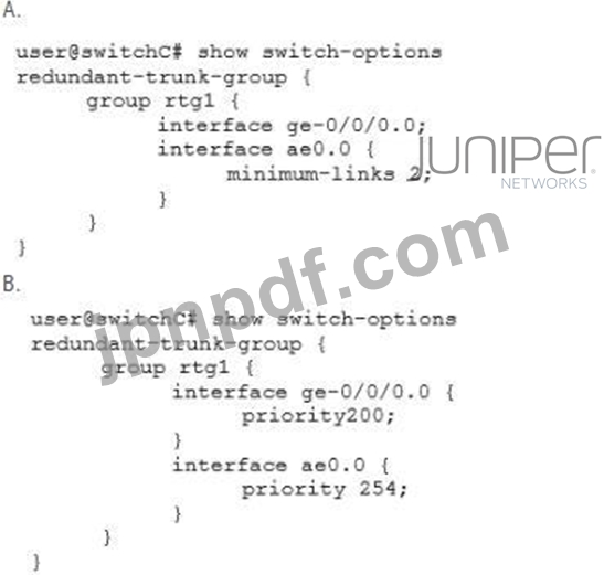 展示を参照すると、アクティブである限り、トラフィックが常にae0.0を使用するように強制する構成はどれですか。