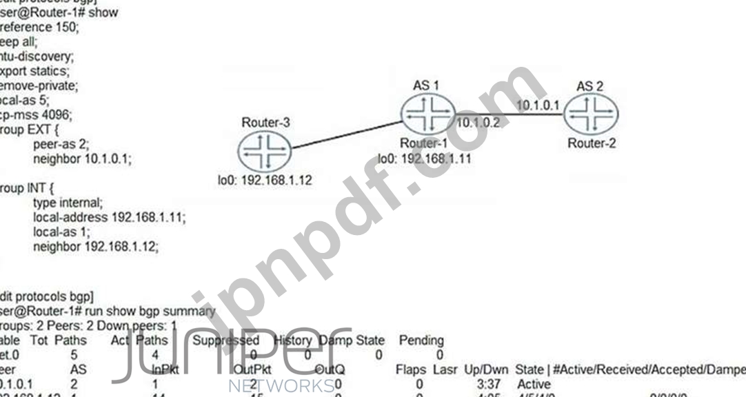 ただし、BGPルートがRouter-1とRouter-2の間で交換されることはありません。
