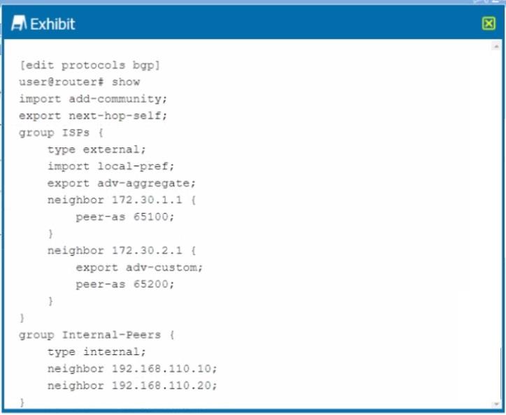 展示を参照すると、どのポリシーがルートを IBGP ピアにエクスポートしますか?