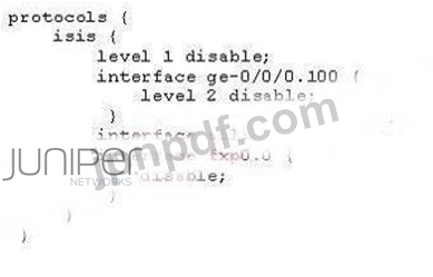 [展示]ボタンをクリックします。展示に示されている構成に基づいて、インターフェイスge-0 / 0 / 0.100のIS-ISレベルの状態はどうなりますか?