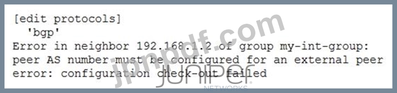 IBGPグループを構成しています。構成をコミットすると、展示に示されているエラーが表示されます。