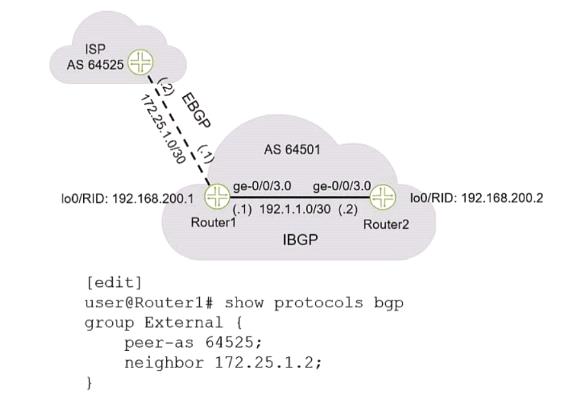 展示を参照すると、ISP との EBGP セッションを確立するときに Route1 構成に何を含める必要がありますか?