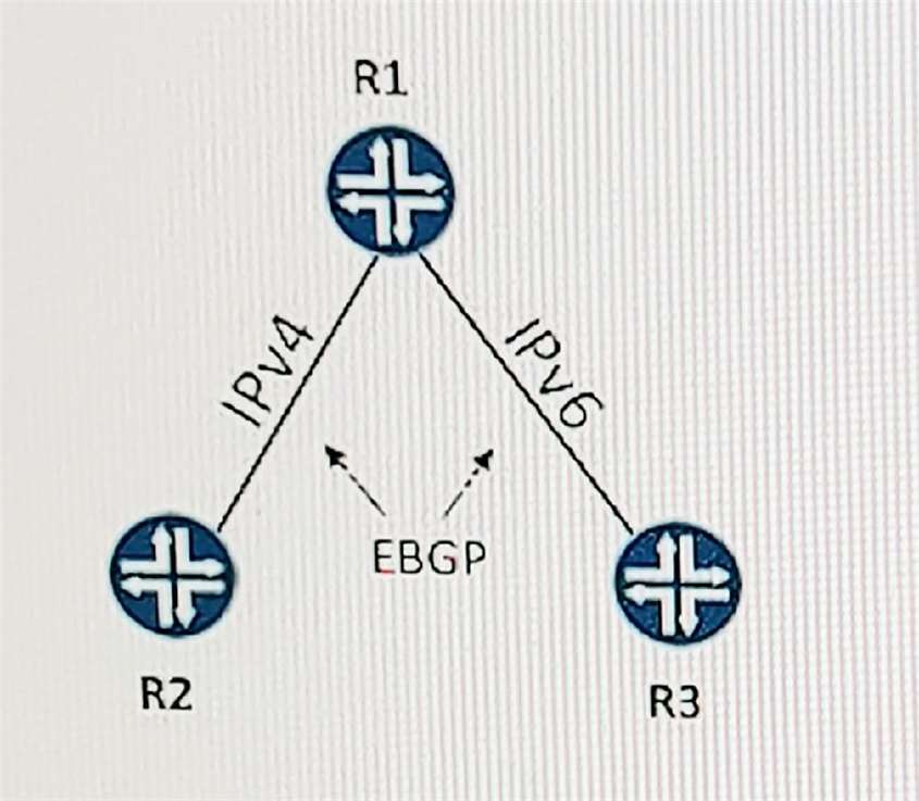 R2 との既存の IPv4 ピアリングがある R1 で新しい BGP 接続を有効にするように求められます。R3 との新しいピアリングでは IPv6 が使用されます。