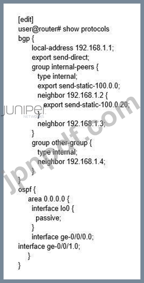 展示を参照すると、どのルートが近隣 192.168.1.2 にエクスポートされますか?