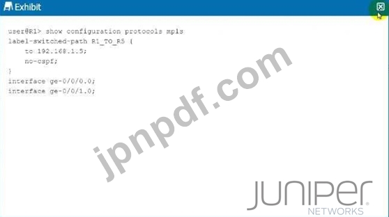 展示に示されている構成を使用して、R1 デバイスと R5 デバイスの間に LSP が確立されています。LSP 内のすべてのデバイスによるトラフィックの転送に MPLS ラベルが使用されていることを確認するように求められます。