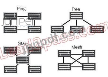 「展示」ボタンをクリックします。展示品に示されている 2 つのトポロジは、スパニング ツリー プロトコルなしで実装できるものはどれですか? (2つお選びください。)