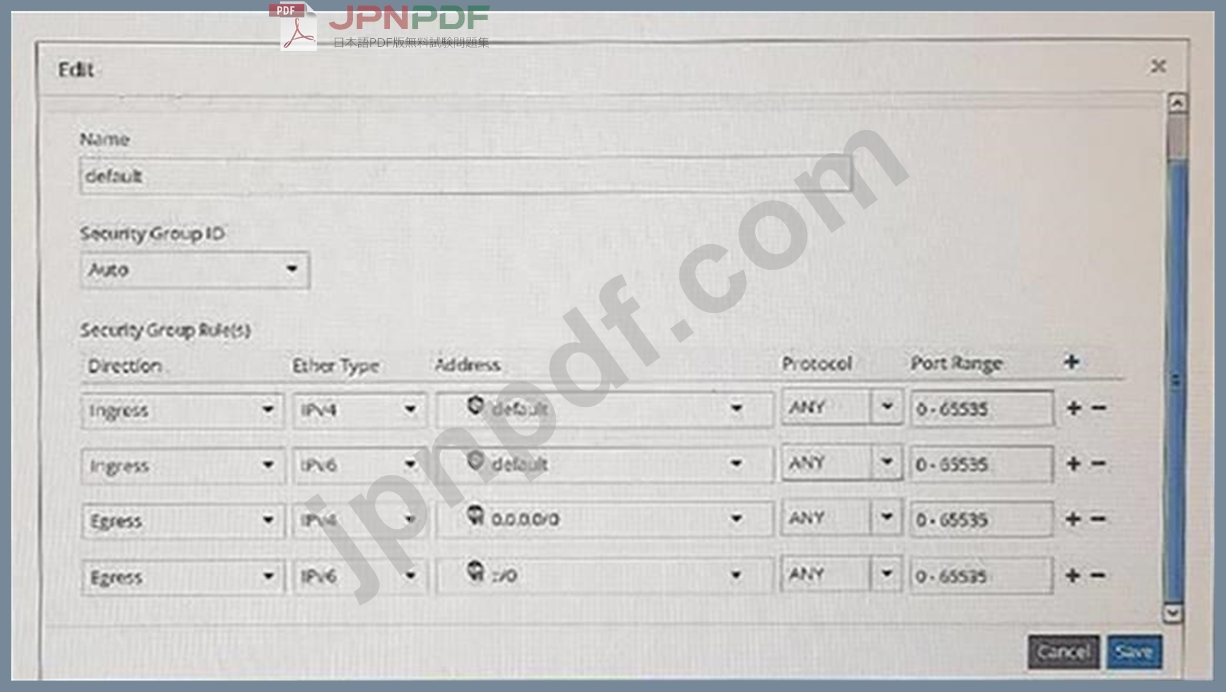 Referring to the exhibit, which two actions would you perform on the default security group to allow access to virtual machine A? (Choose two.)
