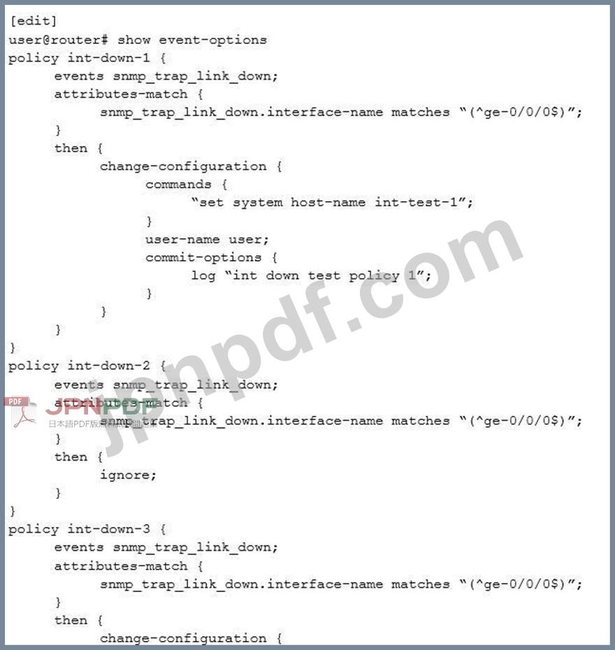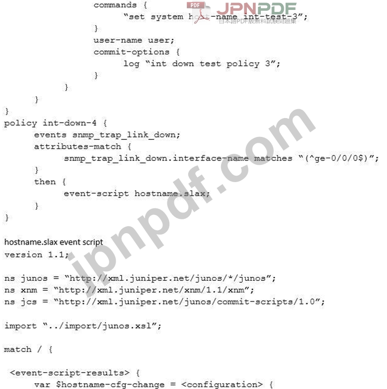 Referring to the exhibit. What will the hostname be if interface ge-0/0/0 goes down?